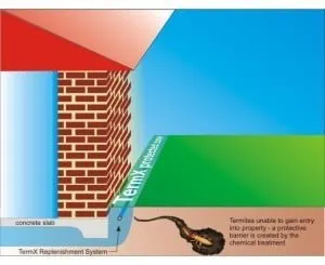 Termiticide is then pumped through this pipe system to form a continuous barrier and will require recharging at regular intervals depending upon the chemical applied and the degree of termite ingress in the properties geographical location…